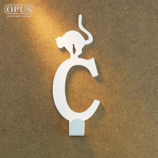 【OPUS 東齊金工】歐式鐵藝壁飾掛勾/無痕掛鉤/掛衣架/廚房衛浴收納(HO-ca10-CW 當貓咪遇上字母C)