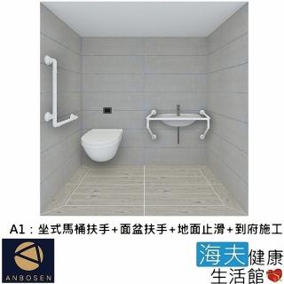 【安博森 海夫】無障礙施工 浴室超值組-坐式馬桶扶手+面盆扶手+地面止滑+到府施工(A1)