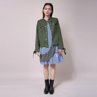 【Who Cares】帥氣金屬環穿孔綁帶外套(外套)