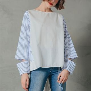 【Who Cares】解構式拼接條紋上衣(上衣)