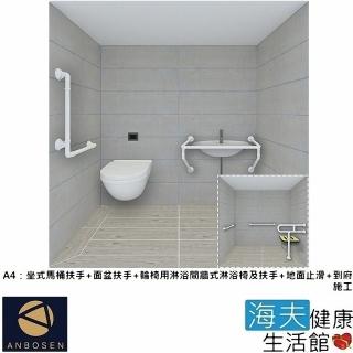 【安博森 海夫】無障礙施工 浴室超值組-馬桶+面盆+輪椅用淋浴間+地面止滑+到府施工(A4)