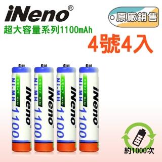 【iNeno】高容量鎳氫充電電池1100mAh(4號4入)