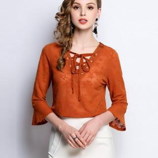 【麗質達人】5292綁帶V領七分袖上衣(L-5XL)