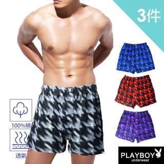 【PLAYBOY】百貨款 兔頭印花開襟舒適四角褲(速達超值3件組)