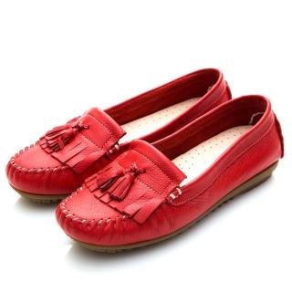 【G.Ms.】MIT系列-極好穿軟Q牛皮流蘇莫卡辛鞋(紅色)