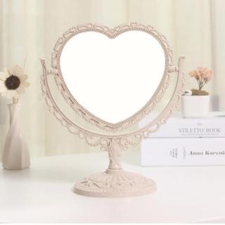 【幸福揚邑】歐式麥稈化妝鏡旋轉放大雙面桌鏡(心形米)