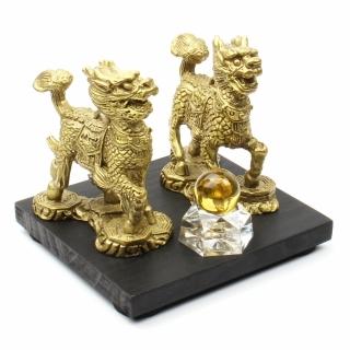 【開運工場】75mm吉祥富瑞銅鑄麒麟組(含木底座)