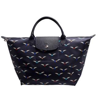 【LONGCHAMP】經典Le Pliage Chevaux Ailes系列天使圖騰短提把尼龍水餃包(中-海軍藍1623663-006)