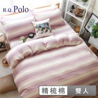 【R.Q.POLO】精梳棉 條紋 薄被套床包組 雙層紗流年-玫色(雙人)