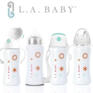 【L.A. Baby】316不鏽鋼保溫奶瓶學習套組270ml 11件組(珍珠白)