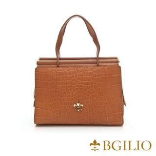 【義大利BGilio】青春鱷魚紋牛皮手提包-小款-駝色(1568.002-04)