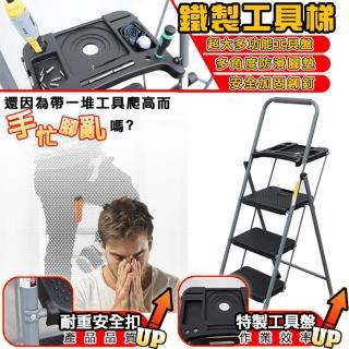 【U-CART 優卡得】三階鐵製摺疊工具盤家用梯