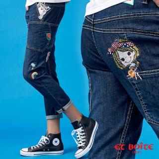 【BLUE WAY】Et Amour貓咪SAY HI烏克麗麗娃精繡男友褲 - ET BOiTE 箱子