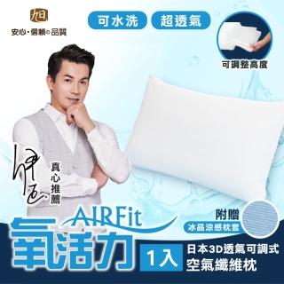【日本旭川】AIRFIT氧活力3D透氣可調式水洗枕-贈專用涼感枕套(感謝伊正真心推薦 枕頭)