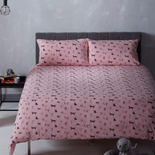 【Yvonne Collection】100%美國純棉被套+枕套組-手繪狗狗 兩色(單人)
