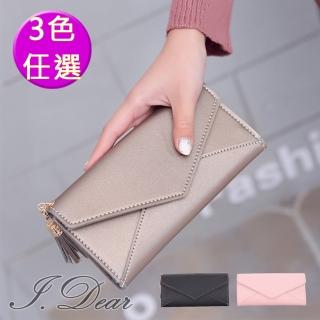 【I.Dear】簡約中長款流蘇吊飾拉鍊手機包長夾信封包(3色)