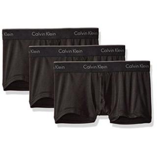 【Calvin Klein】男時尚超細纖維黑色四角內著3件組-網(預購)