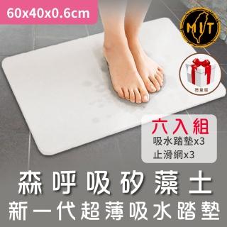 【森呼吸矽藻土】新一代超薄吸水踏墊XL-六件組-礦紋灰(耐髒汙 吸水 踏墊 超薄)