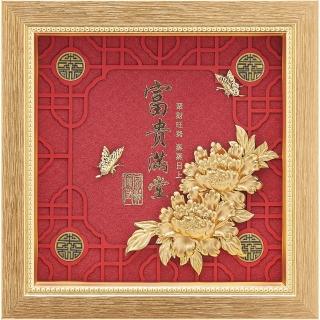 【開運陶源】純金 金箔畫- 牡丹 富貴滿堂A(金鴻喜系列)