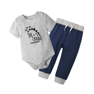 【Baby童衣】任選 男寶 短袖純棉印花休閒套裝 80078(淺灰)