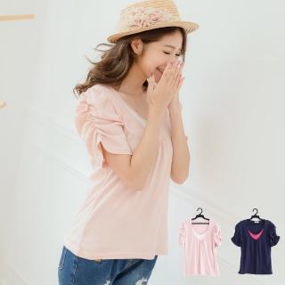 【衣心衣意中大尺碼】現貨-素面公主包袖假二件上衣(藍-粉ZC4A1317)