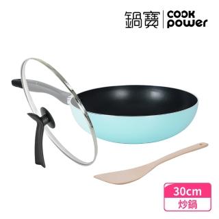 【CookPower 鍋寶】金鑽不沾鍋炒鍋3件組30CM-蒂芬妮藍(30炒+蓋+鏟)