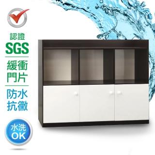 【IHouse】SGS 防潮抗蟲蛀緩衝塑鋼加寬三門半開放置物櫃 寬122深41.5高102cm