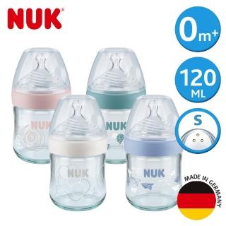 【NUK】自然母感玻璃奶瓶120ml-附1號小圓洞矽膠奶嘴0m+(顏色隨機出貨)
