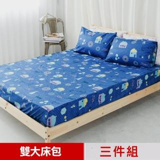 【米夢家居】原創夢想家園-台灣製造100%精梳純棉雙人加大6尺床包三件組(深夢藍)