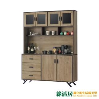 【綠活居】謝克 時尚5尺木紋餐櫃/收納櫃組合(上+下座)