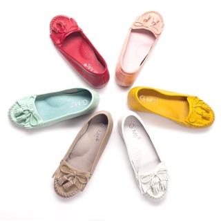 【GMS】Q彈新主張-流蘇蝴蝶結真皮內增高豆豆鞋(溫柔粉/可可灰/薄荷綠/快樂黃/蘋果紅)