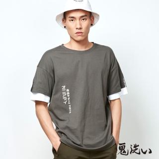 【BLUE WAY】潮流鬼洗-假兩件Oversize印花圓領短TEE - 鬼洗