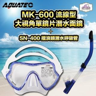 【AQUATEC】SN-400潛水呼吸管+MK-600流線型大視角潛水面鏡 藍框 優惠組(潛水面鏡 潛水呼吸管)