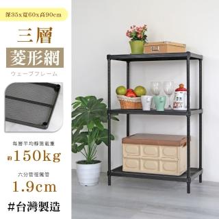 【居家cheaper】菱形網三層架-35X60X90CM(鬃耀黑 高荷重 整組荷重450公斤)