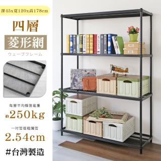 【居家cheaper】鬃耀黑 高荷重菱形網四層架-45X120X178CM(層板平均每層荷重250公斤)