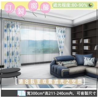 【宜欣居傢飾】童年往事―印花遮光窗簾_米/藍-W300cm*H211-240cm以內*可指定尺寸(訂製/摺景/落地窗簾)