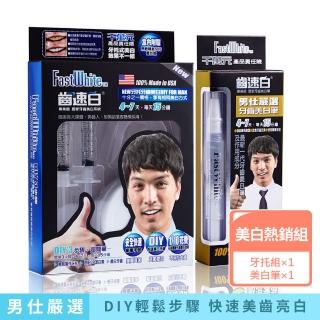 【FastWhite 齒速白】男仕牙托牙齒美白組+男仕隨身牙齒美白筆(非美白貼片電動刮鬍刀刮鬍泡)