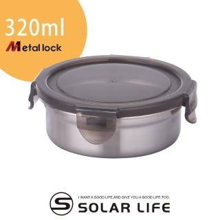 【索樂生活】韓國Metal lock圓形不鏽鋼保鮮盒320ml(304不銹鋼真空密封環保抗菌防漏保鮮盒)
