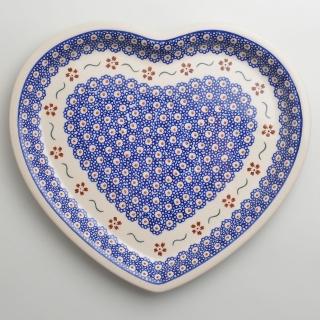 【波蘭陶 Zaklady】紅點藍花系列 愛心造型餐盤 波蘭手工製