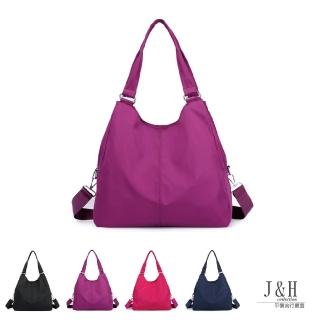 【J&H collection】簡約多隔層尼龍旅遊手提肩背包(黑色 / 紫色 / 玫紅色 / 深藍色)