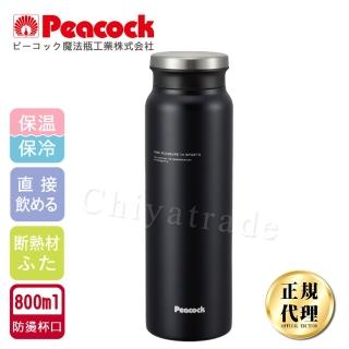 【日本孔雀Peacock】商務休閒不銹鋼保冷保溫杯800ML-消光黑(防燙杯口設計)