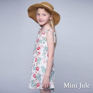 【Mini Jule】洋裝 紅花綠葉綁帶細肩帶洋裝(白)