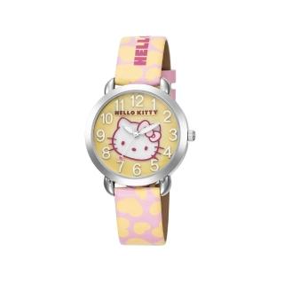 【HELLO KITTY】凱蒂貓 繽紛愛心立體貓頭手錶(粉紅黃/黃面 LK689LWYY)
