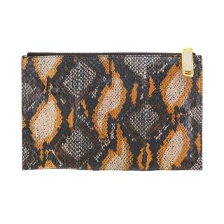 【FENDI 芬迪】限量仿蛇皮拉鍊手拿包(駝)