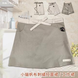 【BonBon naturel】帆布防水防油汙短圍裙 紅/黑(防水圍裙)