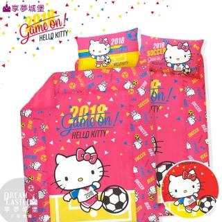 【享夢城堡】雙人床包涼被四件組(HELLO KITTY 2018世足-粉.紅)