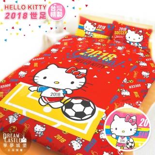 【享夢城堡】雙人床包兩用被套四件組(HELLO KITTY 2018世足-粉.紅)