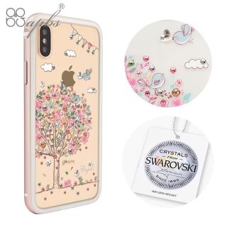【apbs】iPhone XS / iPhone X 施華彩鑽鋁合金屬框手機殼(玫瑰金相愛)
