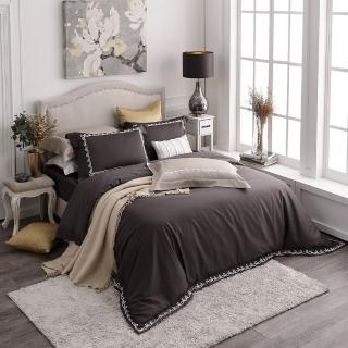 【FITNESS】100支匹馬棉500T雙人刺繡四件組-米羅納(深褐咖色)