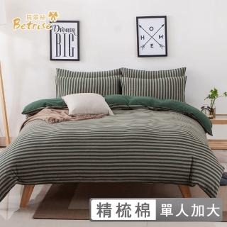 【Betrise】100%純棉針織條紋三件式被套床包組-森林曲調(單人)